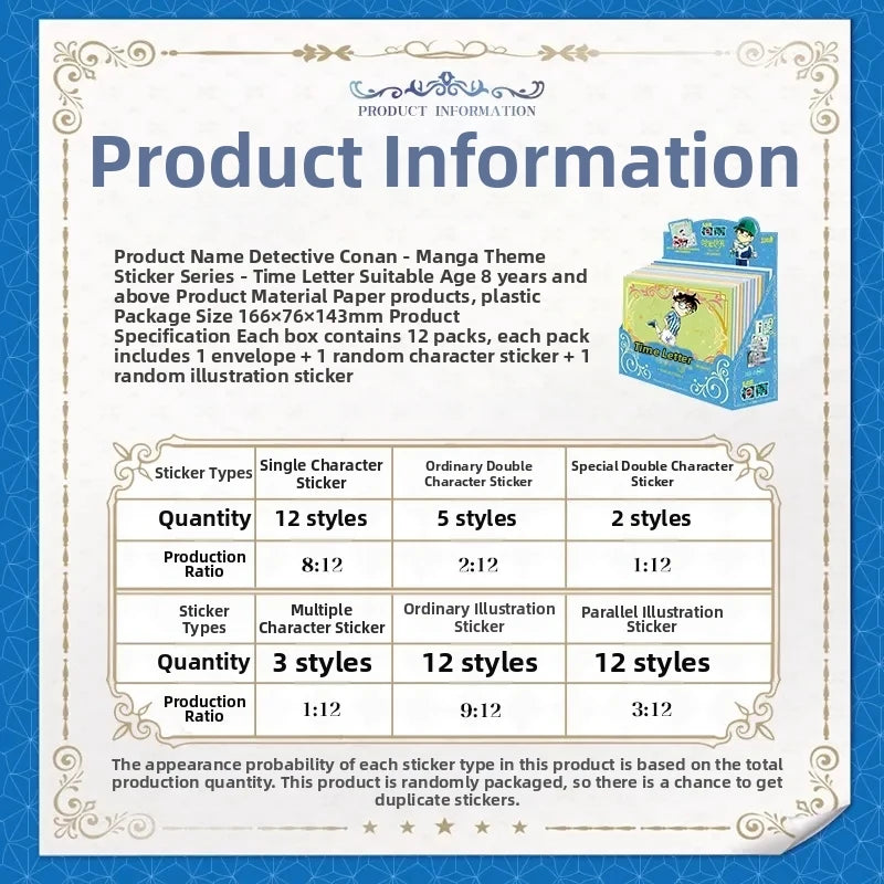 Each box contains 12 packs, each pack includes 1 envelope + 1 random character sticker