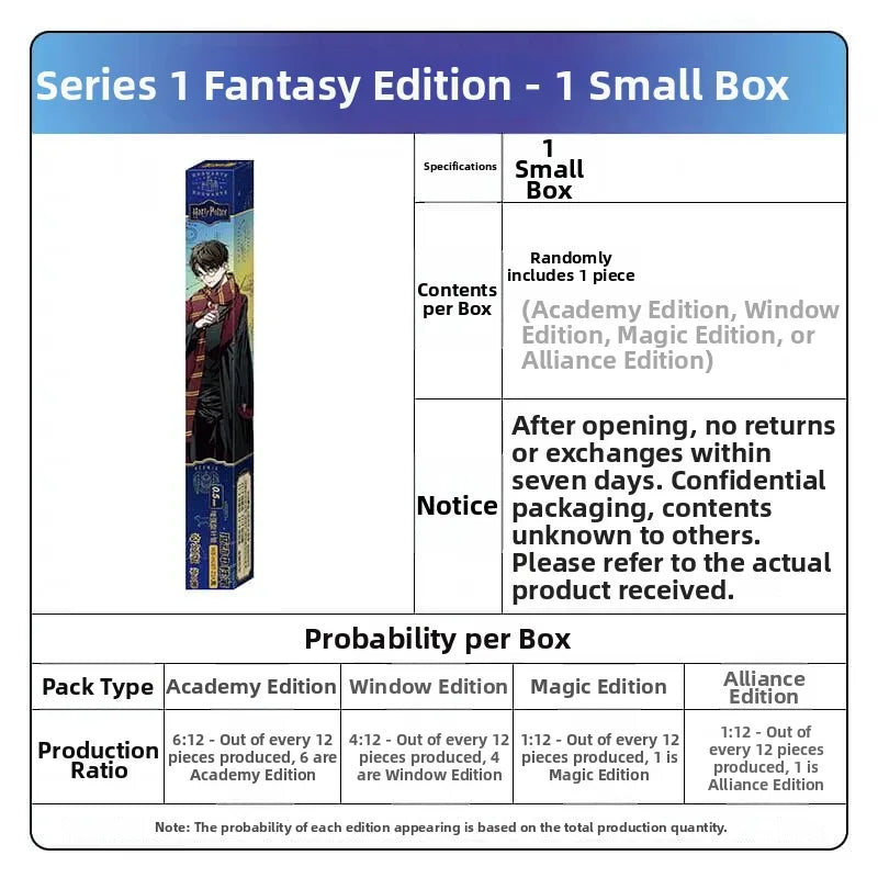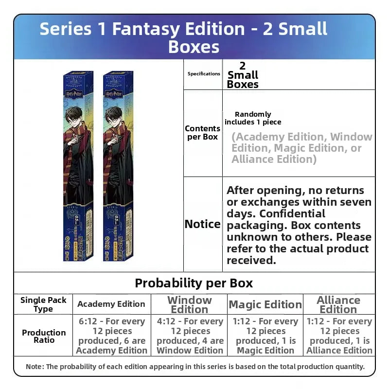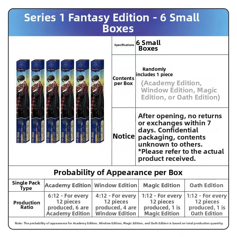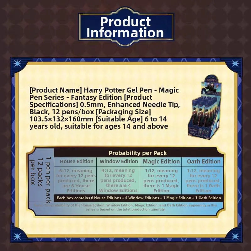 Each small box contains one gel pen, and each set includes 6 sachets as well as 6 small boxes. The sachets are available in four types: Academy Style, Window Style, Magic Tier Style and Oath Style.