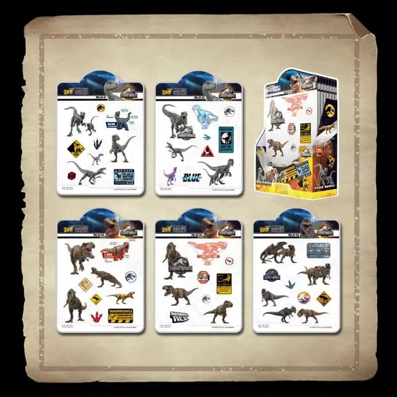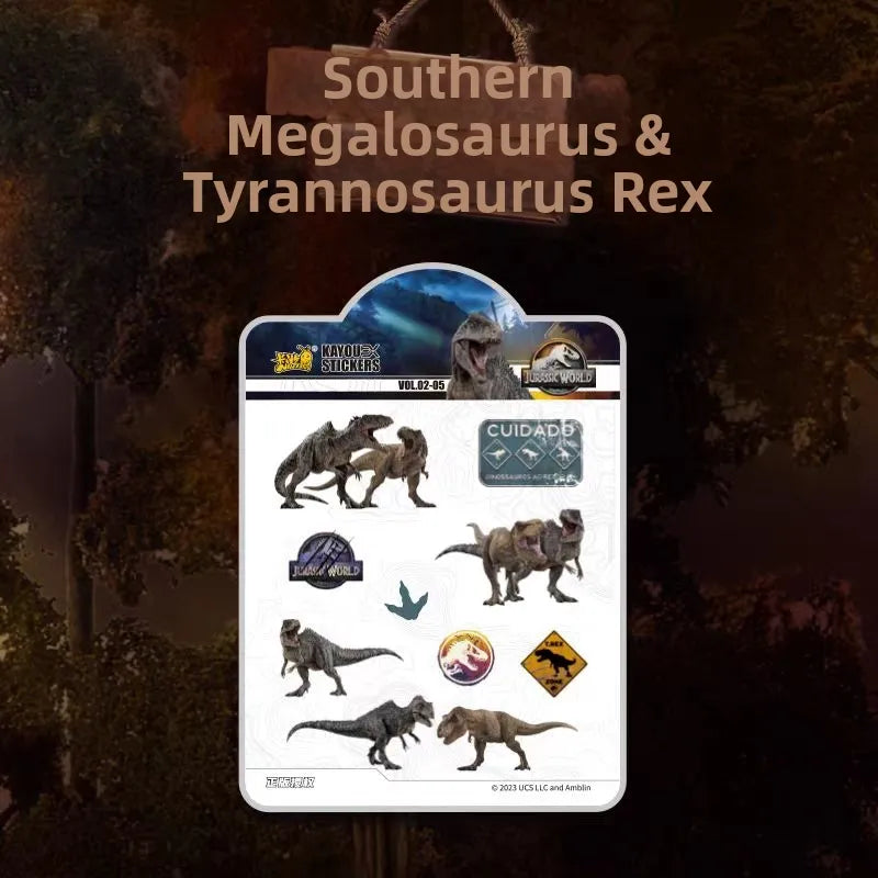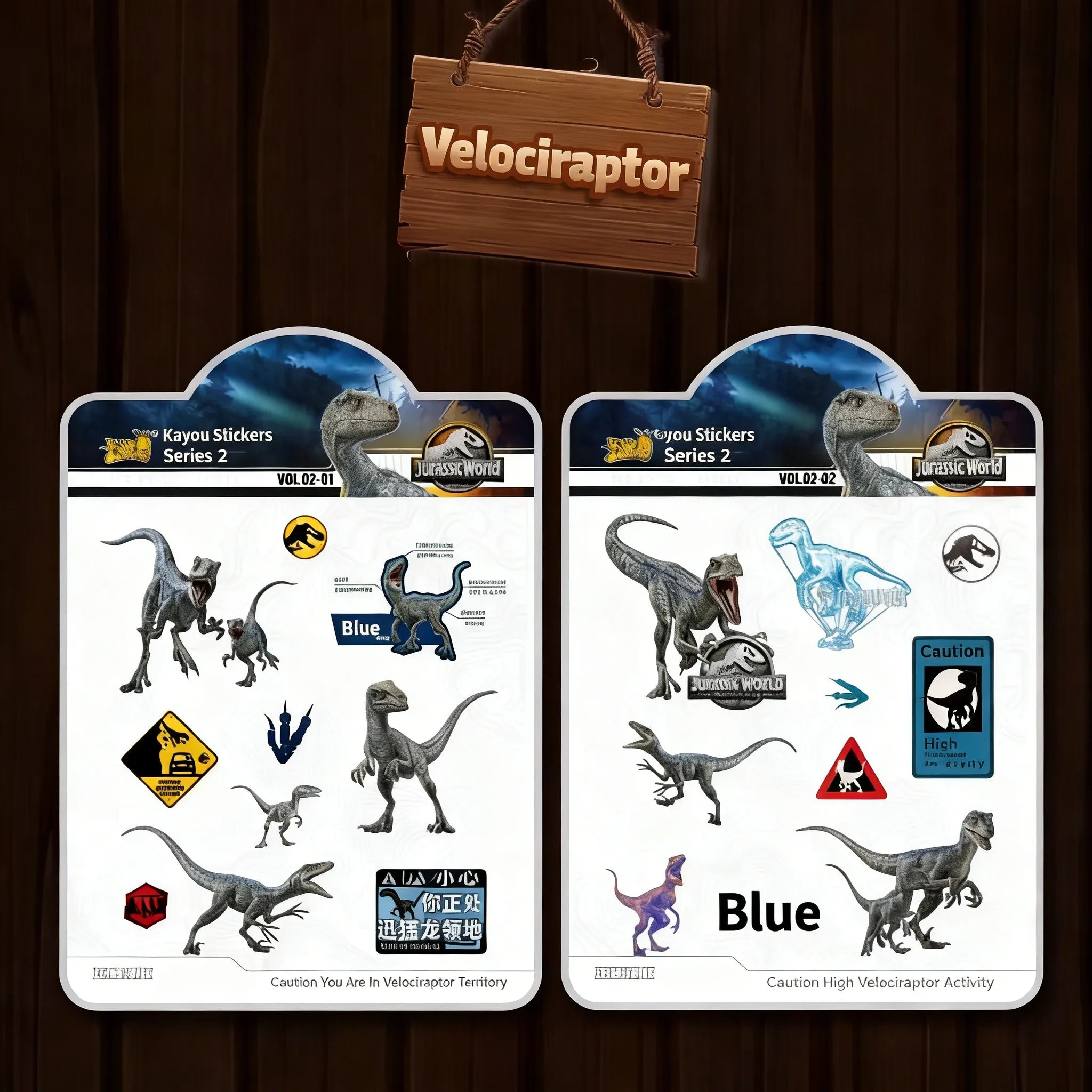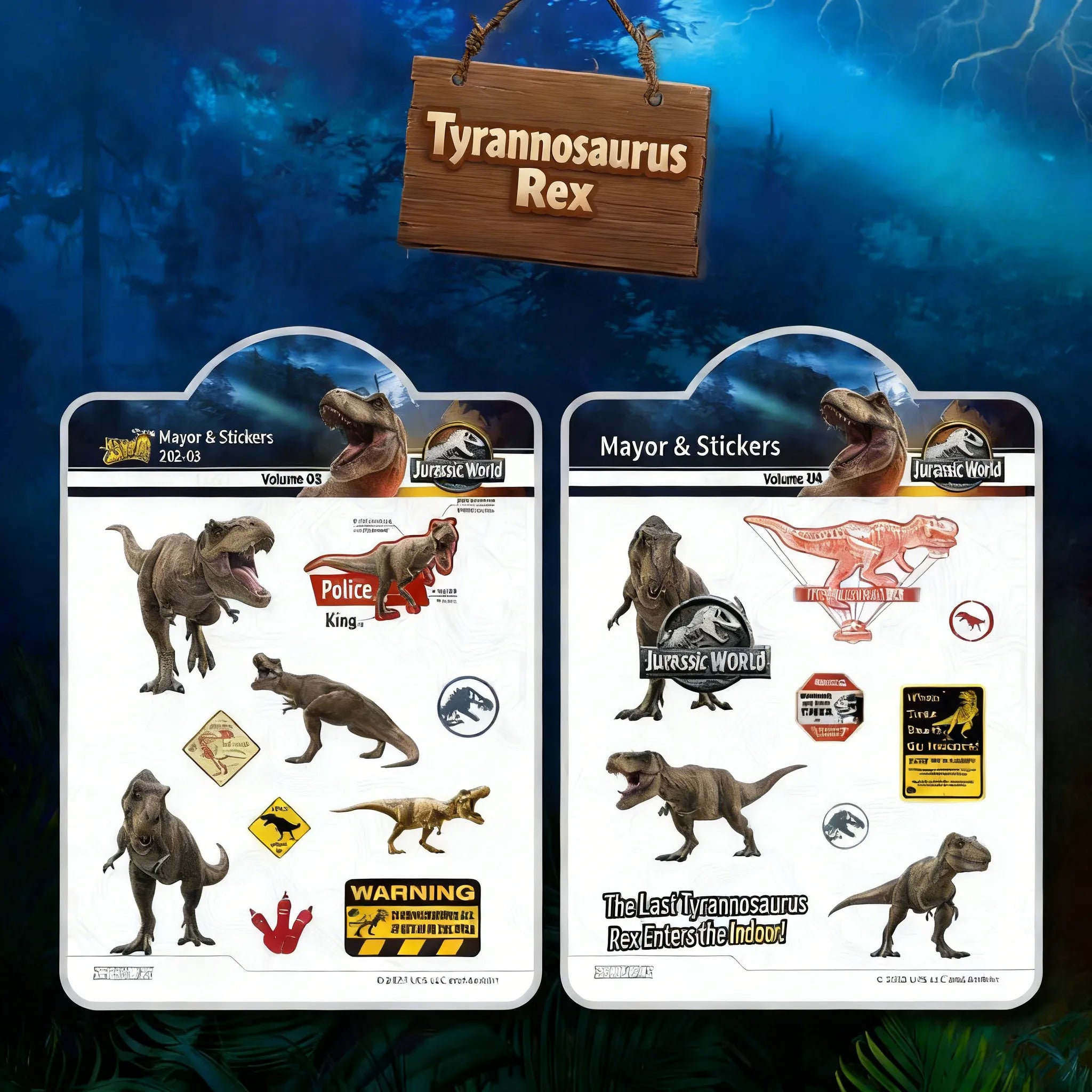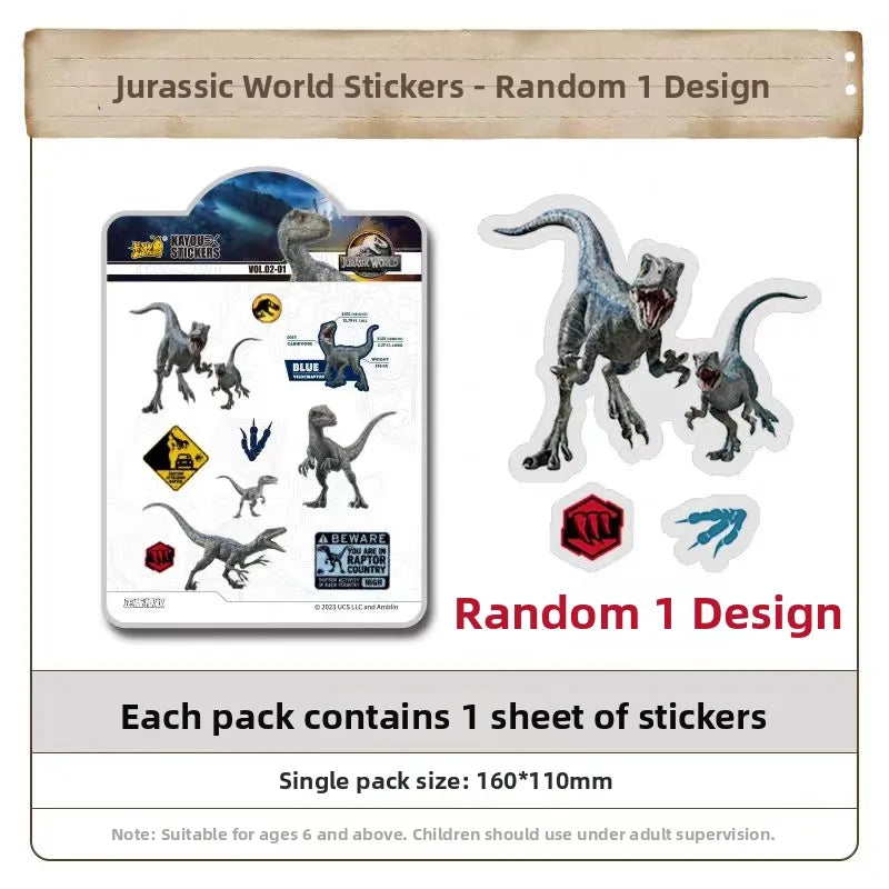 This product has a medium box dimension of 120 × 45 × 162 mm, with specifications including 5 variants and 20 packs in total; each individual pack measures 160 × 110 mm, covering designs of Tyrannosaurus Rex and Velociraptor.