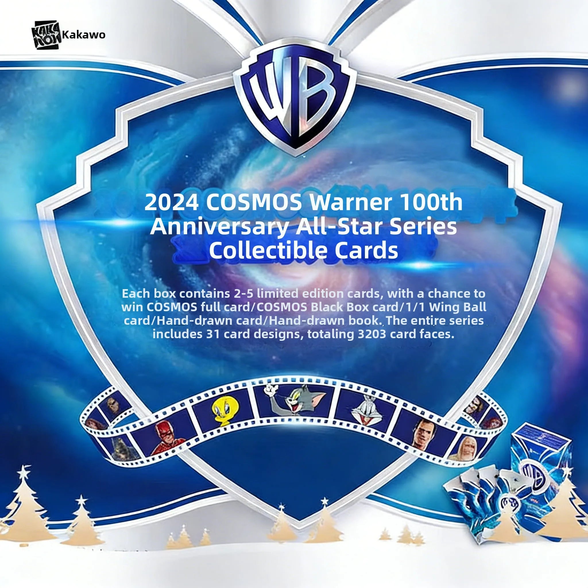 2~5 limited serial cards per box with a chance to obtain COSMOS Gold Cards, COSMOS Black Gold Cards, Supreme Ring 1/1, Sketch Cards and Sketch Booklets; the full series includes 31 card types and a total of 3,203 card face designs; 5 cards per pack, 10 packs per box.