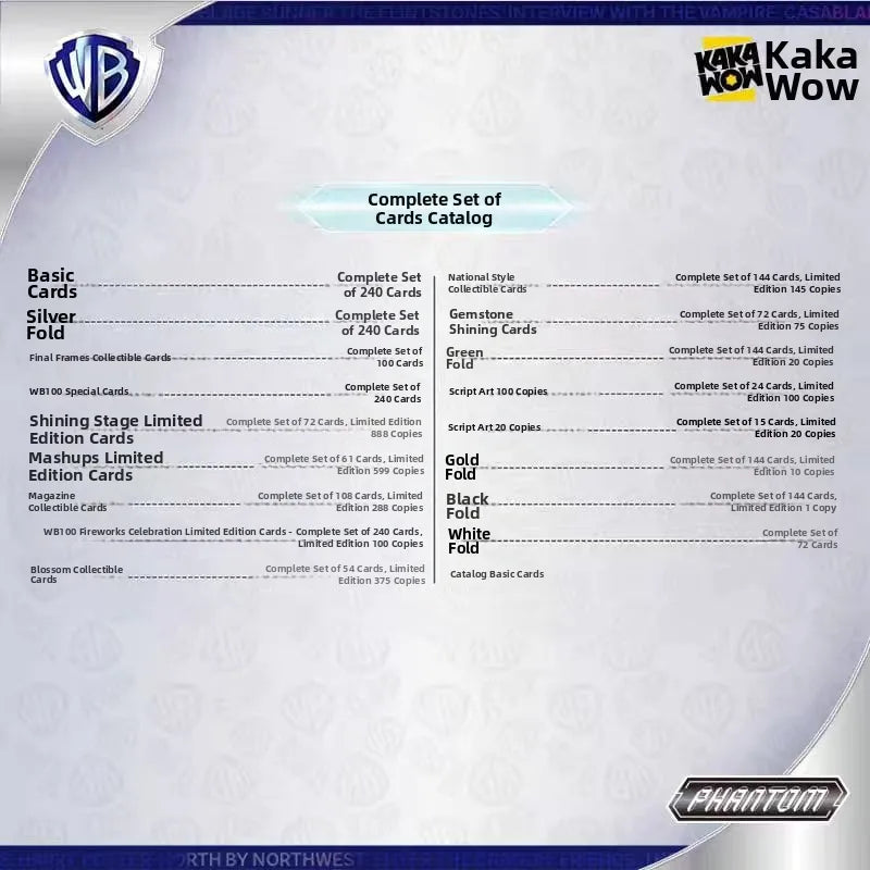 2~4 limited serial cards per box; HE BOO: Chance to get 10 serial gold parallels, 1 serial black parallel, and white parallels; INER ACAUS; RRY SE7E: 18 card types in the whole series; EVER HA WONDER WOMA PE: Total of 2115 card face designs; 5 cards per pack, 10 packs per box, each pack contains 4 base cards + 1 insert card.